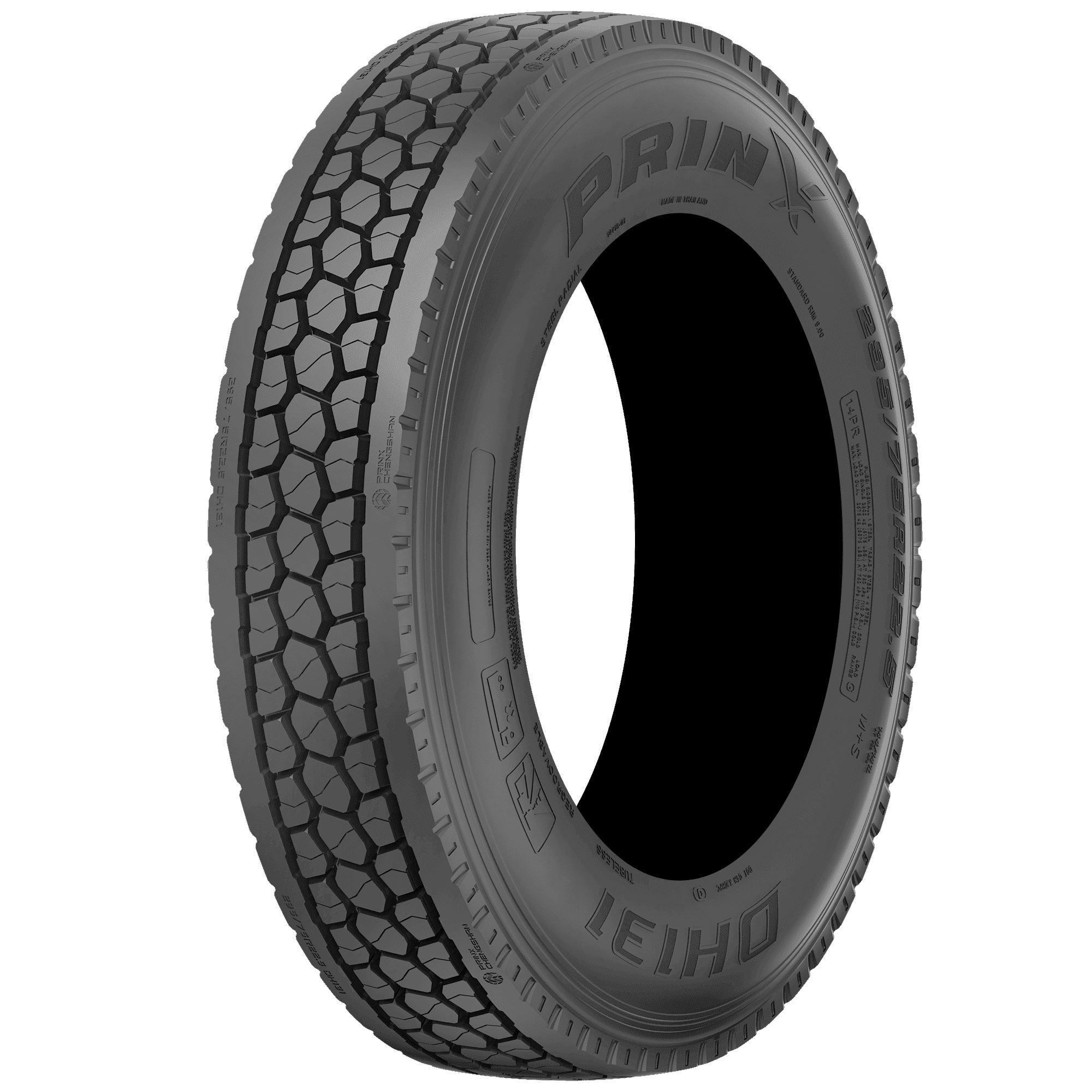 The Prinx DH131 is a commercial tire for the drive axles of semi-trucks in regional or line haul highway service. The Prinx DH131 features a retreadable casing, closed shoulder, tread blocks that are designed for good heat dispersal and year-round traction, a dense network of sipes, and a deep tread depth.
